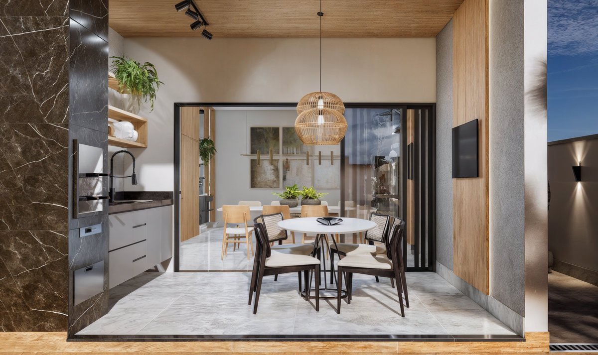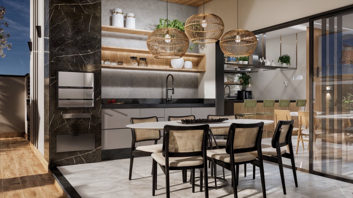 Este espaço foi pensado para proporcionar momentos de lazer e relaxamento em um ambiente acolhedor, elegante e funcional. A área conta com: